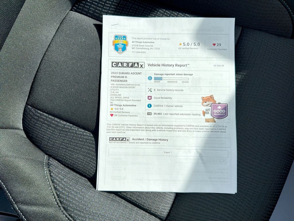 This 2023 Subaru Ascent Premium has been well-maintained and presents a clean, reliable option for buyers seeking value in Bedford, PA. With modern connectivity, essential driver aids, and Subaru's reputation for durability, this vehicle represents a smart purchase at the best price available. Contact us to schedule a test drive and experience the confident ride and practical versatility of this Subaru Ascent today.