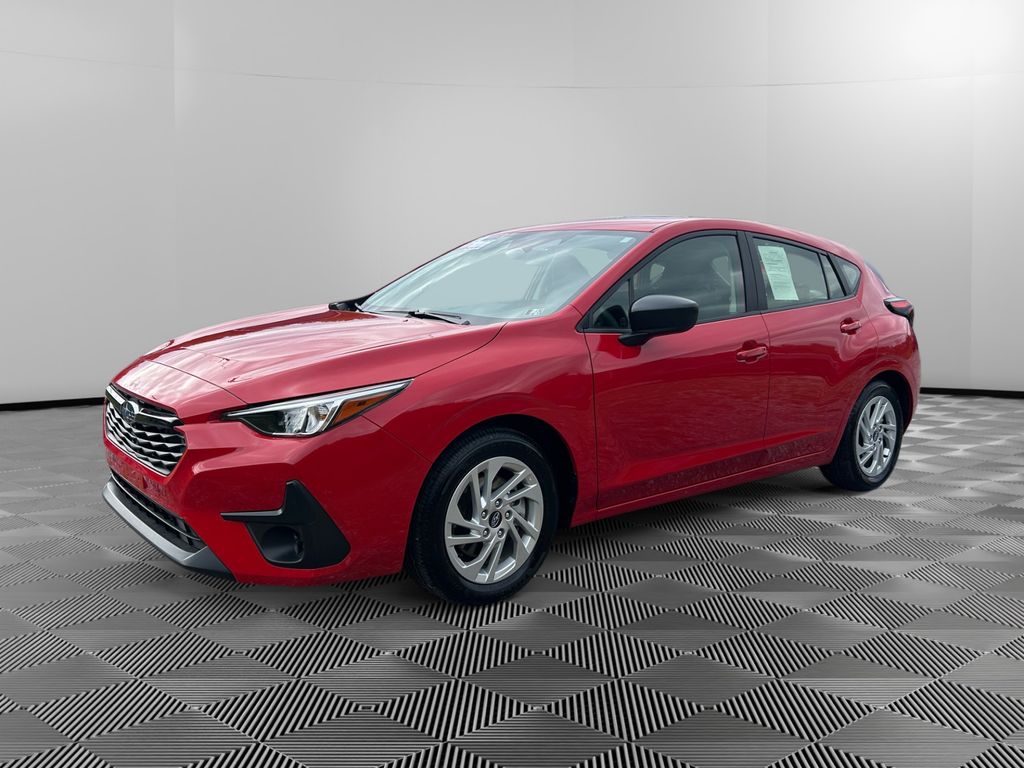 This small car has auto-adjust speed for safe following. This vehicle features a hands-free Bluetooth phone system. with XM/Sirus Satellite Radio you are no longer restricted by poor quality local radio stations while driving this Subaru Impreza. Anywhere on the planet, you will have hundreds of digital stations to choose from. The vehicle offers Automatic Climate Control for personalized comfort. The vehicle stays safely in its lane with Lane Keep Assist. Protect the vehicle from unwanted accidents with a cutting edge backup camera system. This 2025 Subaru Impreza comes equipped with Android Auto for seamless smartphone integration on the road. This Subaru Impreza offers Apple CarPlay for seamless connectivity. This Subaru Impreza is equipped with all wheel drive. This model has a 4 Cyl, 2.0L high output engine. It excites both driver and bystanders with a polished red exterior with racy lines. Set the temperature exactly where you are most comfortable in the Subaru Impreza. The fan speed and temperature will automatically adjust to maintain your preferred zone climate.