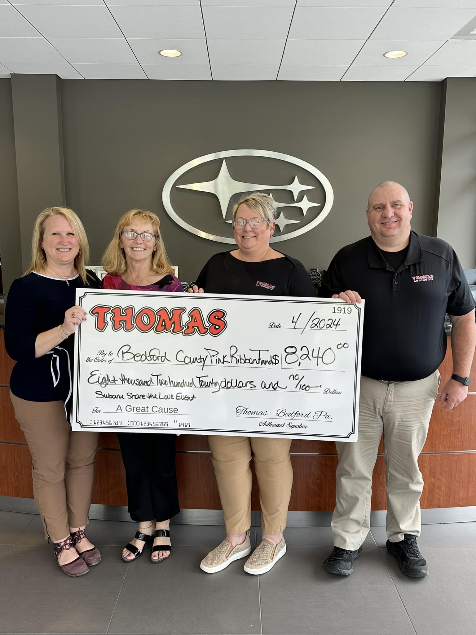 Bedford County Pink Ribbon Fund Receives Generous Donation from Thomas Subaru