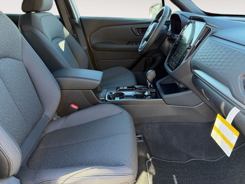 This model offers Android Auto for seamless smartphone integration. This vehicle has auto-adjust speed for safe following. Bluetooth technology is built into this 2026 Subaru Forester , keeping your hands on the steering wheel and your focus on the road. Protect this 2026 Subaru Forester from unwanted accidents with a cutting edge backup camera system. Apple CarPlay: Seamless smartphone integration for the Subaru Forester - stay connected and entertained on the go! It keeps you comfortable with Auto Climate. This 2026 Subaru Forester stays safely in its lane with Lane Keep Assist. Load groceries and much more with ease into it thanks to the power liftgate. Conquer any rainy, snowy, or icy road conditions this winter with the all wheel drive system on this mid-size suv. This mid-size suv shines with an exquisite metallic silver exterior finish. Control your garage door with its built in HomeLink System. The Subaru Forester has a 4 Cyl, 2.5L high output engine.