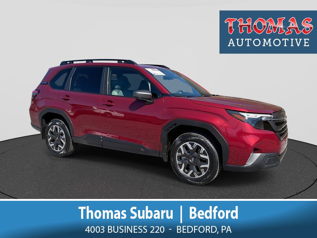 Discover exceptional value with this 2026 Subaru Forester Premium, now available in Bedford, PA. Powered by a reliable 2.5L 4-cylinder gasoline engine and equipped with Subaru's acclaimed AWD, this Subaru Forester delivers confident handling, efficient performance, and safety-ready capability for year-round driving. Inside, enjoy modern connectivity with Apple CarPlay and Android Auto for seamless smartphone integration, plus Hands-Free Bluetooth for effortless calls and audio streaming. The Back-Up Camera enhances parking confidence, while Lane Keep Assist helps maintain safer highway travel. Comfortable seating and thoughtful cargo space make this Subaru Forester an ideal companion for daily commutes, weekend adventures, and family trips. This 2026 Subaru Forester Premium blends practicality with technology and comes priced to move â" we're offering the best price on this model in the Bedford, PA area. Competitive financing options and transparent vehicle history make purchasing simple and stress-free. Whether you need a dependable vehicle for work, school runs, or outdoor excursions, this Subaru Forester Premium is a standout choice. Contact us to schedule a test drive in Bedford, PA, and experience the performance and features firsthand. Don't miss out on the best-priced 2026 Subaru Forester Premium with AWD and advanced safety and connectivity features.