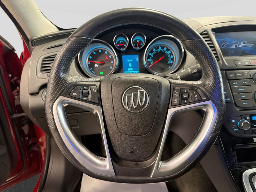 The rear parking assist technology on the Buick Regal will put you at ease when reversing. The system alerts you as you get closer to an obstruction. See the road and the surrounding area better with the Xenon HID headlamps on this 2012 Buick Regal . Once you have these you'll want them on all your cars. Our dealership has already run the CARFAX report and it is clean. A clean CARFAX is a great asset for resale value in the future. The HID headlamps on this Buick Regal light your way like never before. The leather seats in this unit are a must for buyers looking for comfort, durability, and style. Bluetooth technology is built into this 2012 Buick Regal , keeping your hands on the steering wheel and your focus on the road. This model keeps you comfortable with Auto Climate. This model excites both driver and bystanders with a polished red exterior with racy lines.