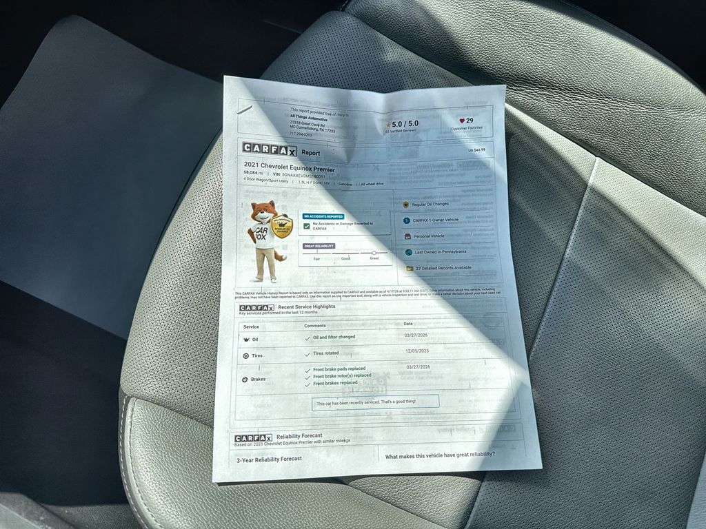Experience exceptional value with this 2021 Chevrolet Equinox Premier AWD, now available in Bedford, PA. Featuring a fuel-efficient 4-cylinder 1.5L gasoline engine, this Chevrolet Equinox combines smooth performance with confident all-wheel drive handling for year-round reliability. The Premier trim elevates comfort and style with premium leather seats, a refined interior, and advanced convenience features. Stay connected and entertained on every drive with Apple CarPlay and Android Auto integration, plus Hands Free Bluetooth for seamless phone calls and audio streaming. This vehicle includes modern safety and driver-assist amenities inherent to the Premier package, offering peace of mind for daily commutes and long road trips alike. The CARFAX 1-Owner history enhances value and trust, reflecting careful ownership and responsible maintenance. Located in Bedford, PA, this Chevrolet Equinox Premier is competitively priced to sell quickly â" offering the best price in the area for buyers seeking a high-quality, feature-packed compact SUV. Whether you prioritize technology, comfort, or dependable AWD performance, this model delivers. Schedule a test drive today to experience the premium interior, responsive engine, and confident handling firsthand. Don't miss your chance to own a well-maintained 2021 Chevrolet Equinox Premier with sought-after features and exceptional value in Bedford, PA. Act now to secure this outstanding SUV at the best price available.