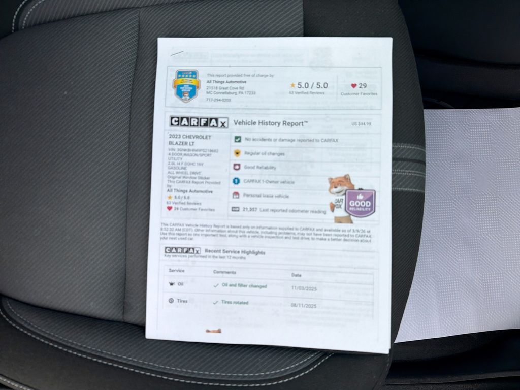 Discover a sharp 2023 Chevrolet Blazer LT with only 21,357 miles, now available in Bedford, PA. This AWD Chevrolet Blazer pairs a fuel-efficient 2.0L 4-cylinder gasoline engine with responsive handling and confident all-weather traction, making it an ideal choice for commuters and weekend adventurers alike. With low mileage and a clean, well-maintained history, this Chevrolet Blazer delivers modern style and dependable performance at the best price in the area. Inside, the cabin is equipped for connectivity and convenience. Enjoy seamless smartphone integration with Apple CarPlay and hands-free Bluetooth for calls and music streaming. The Back-Up Camera provides added safety and parking ease, while Lane Keep Assist helps maintain confident highway driving. Remote Start allows you to warm up or cool down the interior before you step in, enhancing comfort year-round. This Chevrolet Blazer LT balances practical features with a refined appearance, offering a comfortable ride for passengers and versatile cargo capacity for errands or road trips. With available all-wheel drive, advanced driver-assist technologies, and low miles, it's an exceptional value for buyers seeking reliability and features without compromise. Visit our Bedford, PA location to see this 2023 Chevrolet Blazer LT in person and take advantage of the best price on this low-mileage, feature-rich crossover.