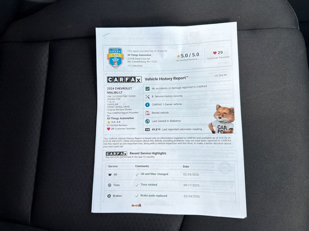 2024 Chevrolet Malibu LT - 1.5L 4-Cylinder, FWD â" 49,724 miles â" Bedford, PA Looking for a reliable midsize sedan at the best price in Bedford, PA? This 2024 Chevrolet Malibu LT with 49,724 miles pairs efficient performance and modern safety features in a stylish package. Powered by a 1.5L 4-cylinder gasoline engine and front-wheel drive, the Chevrolet Malibu LT delivers confident daily driving and excellent fuel economy for commuters and families. Key features: - CARFAX 1-Owner vehicle for added peace of mind - Lane Keep Assist and Lane Departure Warning help maintain safe lane positioning - Hands Free Bluetooth for seamless phone calls and audio streaming - Rear Parking Sensors to aid in tight spots and parking maneuvers The interior balances comfort and technology with intuitive controls and convenient connectivity. Well-maintained and priced to sell, this Chevrolet Malibu LT provides immediate value without sacrificing features you want. Whether you're navigating highway commutes or weekend errands, the Chevrolet Malibu's smooth ride and efficient 1.5L engine make it a smart choice. Located in Bedford, PA, this 2024 Chevrolet Malibu LT is competitively priced and ready for a test drive. Contact us today to schedule a viewing and take advantage of the best price on this dependable, feature-rich sedan.