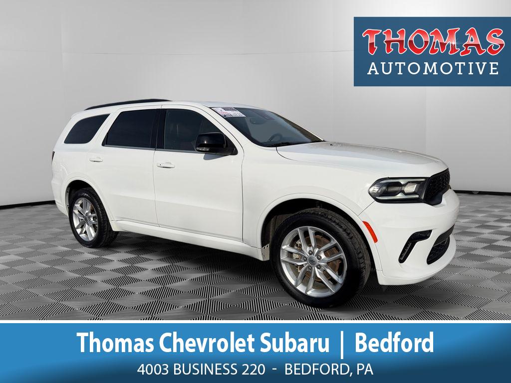 2023 Dodge Durango GT Plus AWD â" V6, 3.6L Gasoline â" located in Bedford, PA. This rugged and refined three-row SUV pairs a responsive 3.6L V6 engine with all-wheel drive for confident handling in varied road conditions. The GT Plus trim brings a balanced mix of comfort and capability, making it ideal for families, commuters and weekend adventurers seeking a versatile vehicle at the best price in the area. Inside, premium features enhance every drive: a heated steering wheel warms chilly mornings, automatic climate control maintains personalized comfort for all passengers, and Apple CarPlay keeps navigation and entertainment seamless and hands-free. Practical technology includes a back-up camera and rear parking sensors to assist with tight parking and low-speed maneuvering. The spacious cabin offers flexible seating and cargo options making it perfect for road trips or daily tasks. Mechanically sound and well-maintained, this Dodge Durango delivers V6 power, towing capability and confident AWD traction without sacrificing ride quality. With competitive pricing and a strong value proposition, it represents the best price available in Bedford, PA for this model year and trim. Schedule a test drive to experience the blend of performance, technology and comfort that sets this 2023 Dodge Durango GT Plus apart. Financing options available.