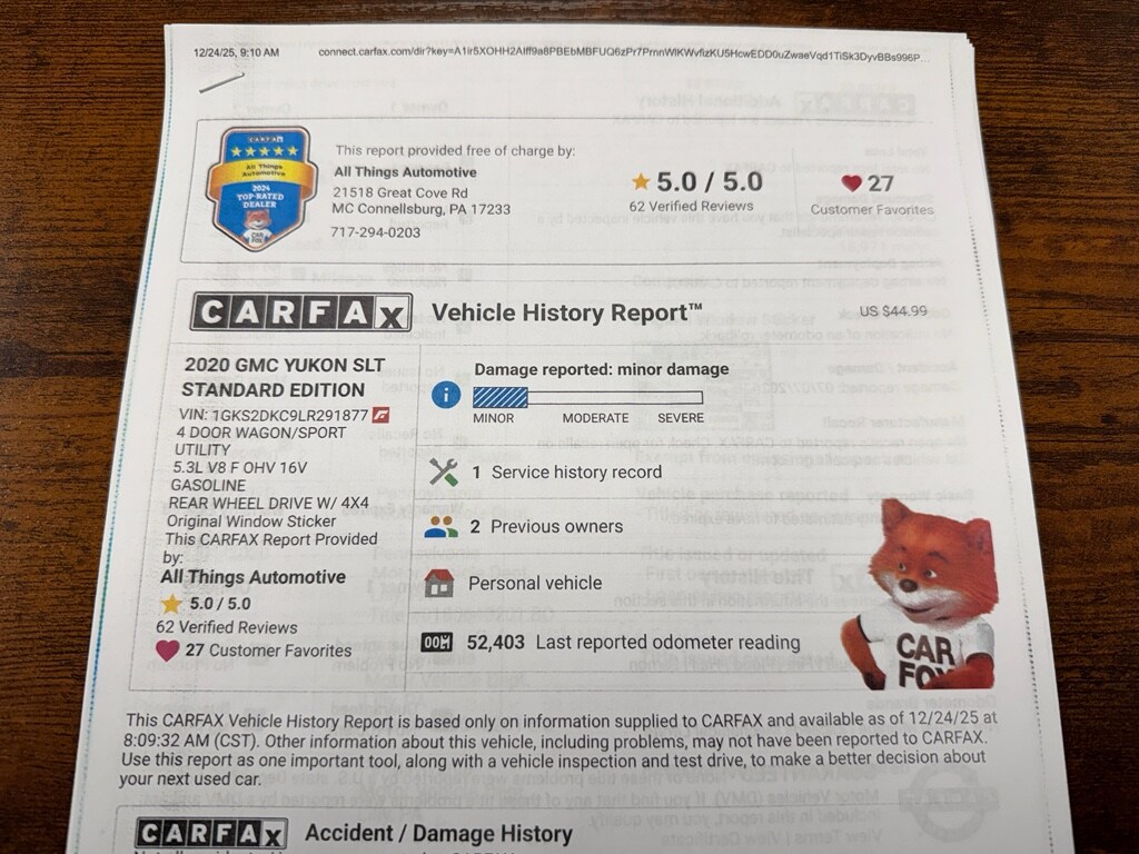Experience the capability and comfort of this 2020 GMC Yukon 1500 SLT Standard Edition, now available in McConnellsburg, PA. Powered by a robust 5.3L V8 gasoline engine and equipped with 4WD, this GMC Yukon delivers confident towing, composed highway cruising, and confident traction in all seasons. Inside, premium amenities include a BOSE stereo system and XM Radio for exceptional audio enjoyment, plus Apple CarPlay for seamless smartphone integration and hands-free connectivity.