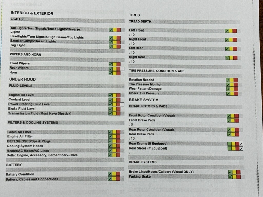 • Odometer readings