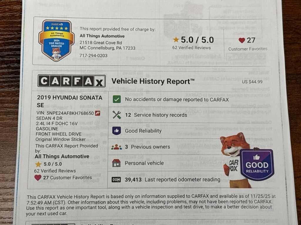Schedule a test drive in McConnellsburg today to experience the smooth ride and feature set for yourself. Financing options are available for qualified buyers. Don't miss this opportunity for a reliable, feature-packed 2019 Hyundai Sonata SE at the best price in the region. Contact us for details and availability.