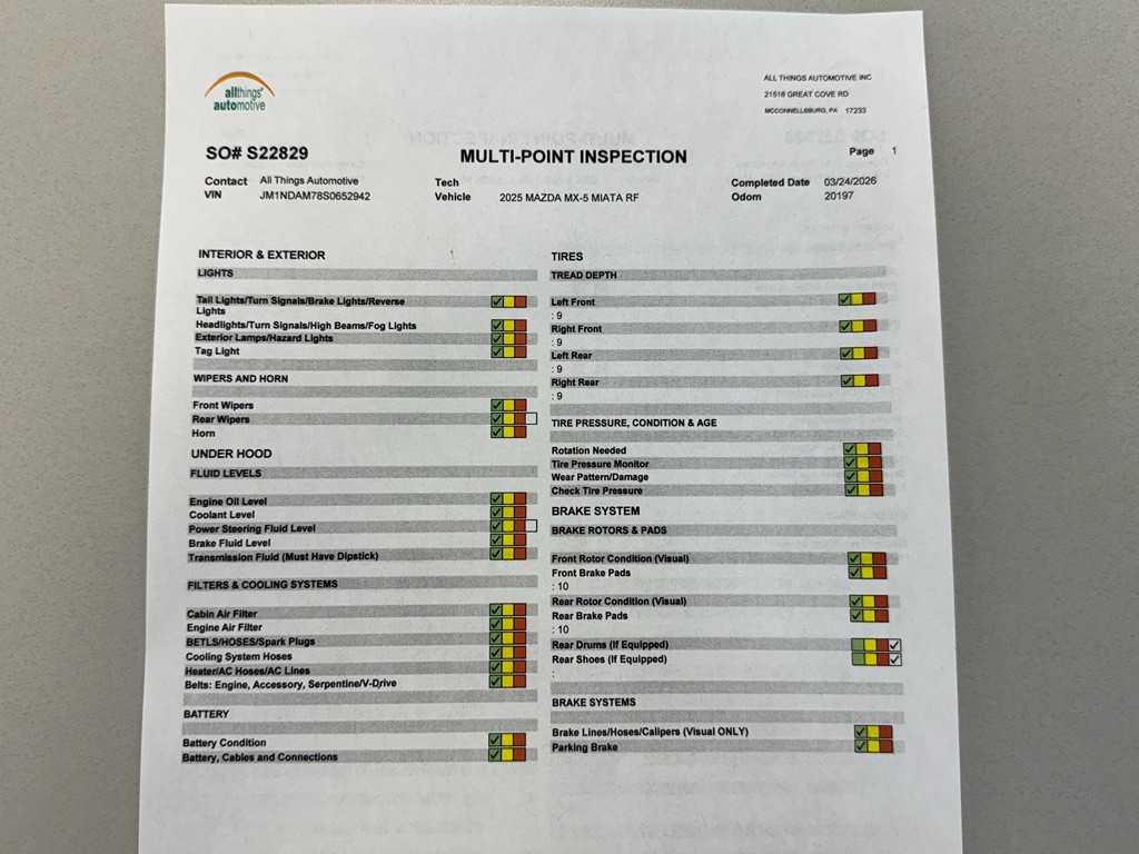 Located in McConnellsburg, PA, this 2025 Mazda MX-5 Miata RF Grand Touring is priced to sell and ready for immediate delivery. Contact us to schedule a test drive and take home an iconic roadster with premium features and excellent value.