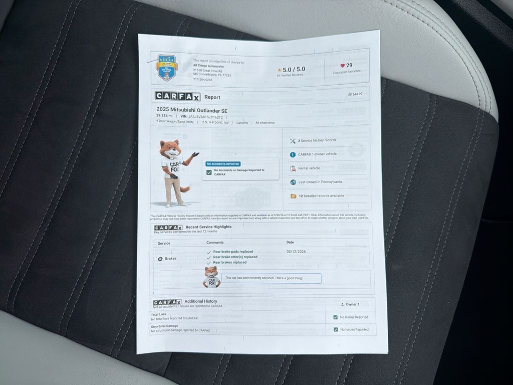 2025 Mitsubishi Outlander SE AWD â" 2.5L 4-Cylinder, 29,124 Miles â" Bedford, PA This 2025 Mitsubishi Outlander SE pairs efficient performance with modern safety and comfort features, making it an excellent value for families and commuters. Powered by a 2.5L 4-cylinder gasoline engine and equipped with AWD, it delivers confident handling in varied weather and road conditions while maintaining strong fuel economy. With only 29,124 miles, this Mitsubishi Outlander offers low mileage for a late-model SUV and many miles of enjoyable driving ahead. Standard and available technologies enhance convenience and safety, including Adaptive Cruise Control, Lane Keep Assist, and Remote Start for cold mornings. The leather seats add a touch of luxury and easy maintenance, while interior space and thoughtful ergonomics provide a comfortable ride for passengers and cargo. The vehicle comes with a CARFAX Clean Report, offering added peace of mind about its history. Located in Bedford, PA, this Mitsubishi Outlander SE is competitively priced and advertised as the best price, delivering excellent value relative to comparable local listings. Whether you need a reliable daily driver or a capable family crossover with modern driver-assist technology, this Mitsubishi Outlander blends practicality, comfort, and safety. Contact us to schedule a test drive or to request the CARFAX report and a full equipment list.