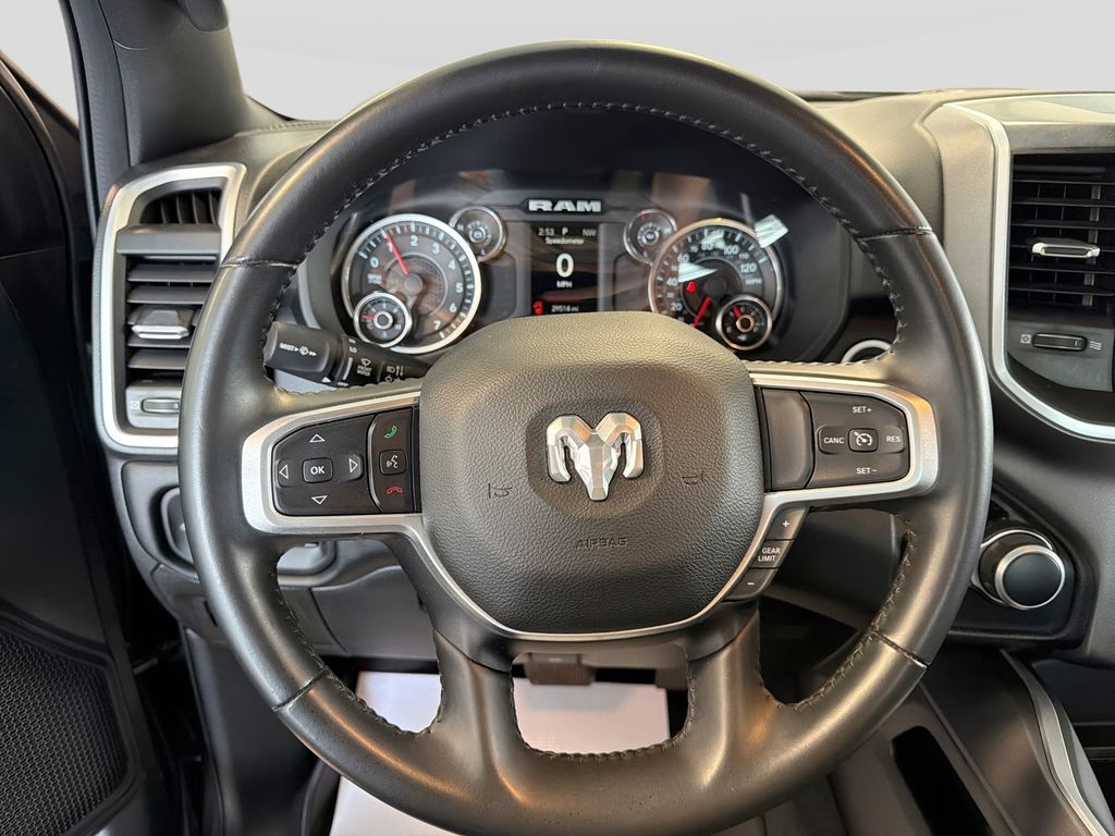 Our dealership has already run the CARFAX report and it is clean. A clean CARFAX is a great asset for resale value in the future. Protect this 2021 Ram 1500 from unwanted accidents with a cutting edge backup camera system. This unit is equipped with the latest generation of XM/Sirius Radio. Never get into a cold vehicle again with the remote start feature on this unit. This vehicle has satellite radio capabilities. Apple CarPlay: Seamless smartphone integration for this unit - stay connected and entertained on the go! The vehicle comes equipped with Android Auto for seamless smartphone integration on the road. It features a hands-free Bluetooth phone system. This unit has adjustable pedals that are luxurious and safety conscious. The vehicle has a V8, 5.7L high output engine. This model projects refinement with a racy metallic gray exterior. When you encounter slick or muddy roads, you can engage the four wheel drive on this model and drive with confidence.