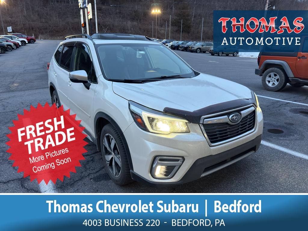 Discover exceptional value with this 2020 Subaru Forester Touring AWD, now available in Bedford, PA. Powered by a reliable 4-cylinder 2.5L gasoline engine, this Touring model blends efficiency and capability with Subaru's proven Symmetrical All-Wheel Drive for confident handling in all weather. The premium interior features leather seats for comfort on every drive and advanced connectivity like Apple CarPlay and hands-free Bluetooth to keep you connected and entertained on the road. Safety and driver assistance are highlighted with Lane Keep Assist to help maintain lane position and enhance highway confidence. This Subaru Forester also carries a CARFAX 1-Owner history, reflecting careful ownership and a well-documented maintenance background for additional peace of mind. Generous cargo space, a composed ride, and a versatile interior make this Subaru Forester an ideal choice for commuters, families, and outdoor enthusiasts alike. With its combination of proven Subaru durability, modern tech features, and a clean single-owner report, this 2020 Subaru Forester Touring stands out in its class. Located in Bedford, PA, this vehicle is priced competitively and advertised as the best priceâ"delivering outstanding value for buyers seeking quality and reliability. Contact us today to schedule a test drive and experience the confident performance and refined interior of this Subaru Forester Touring firsthand.